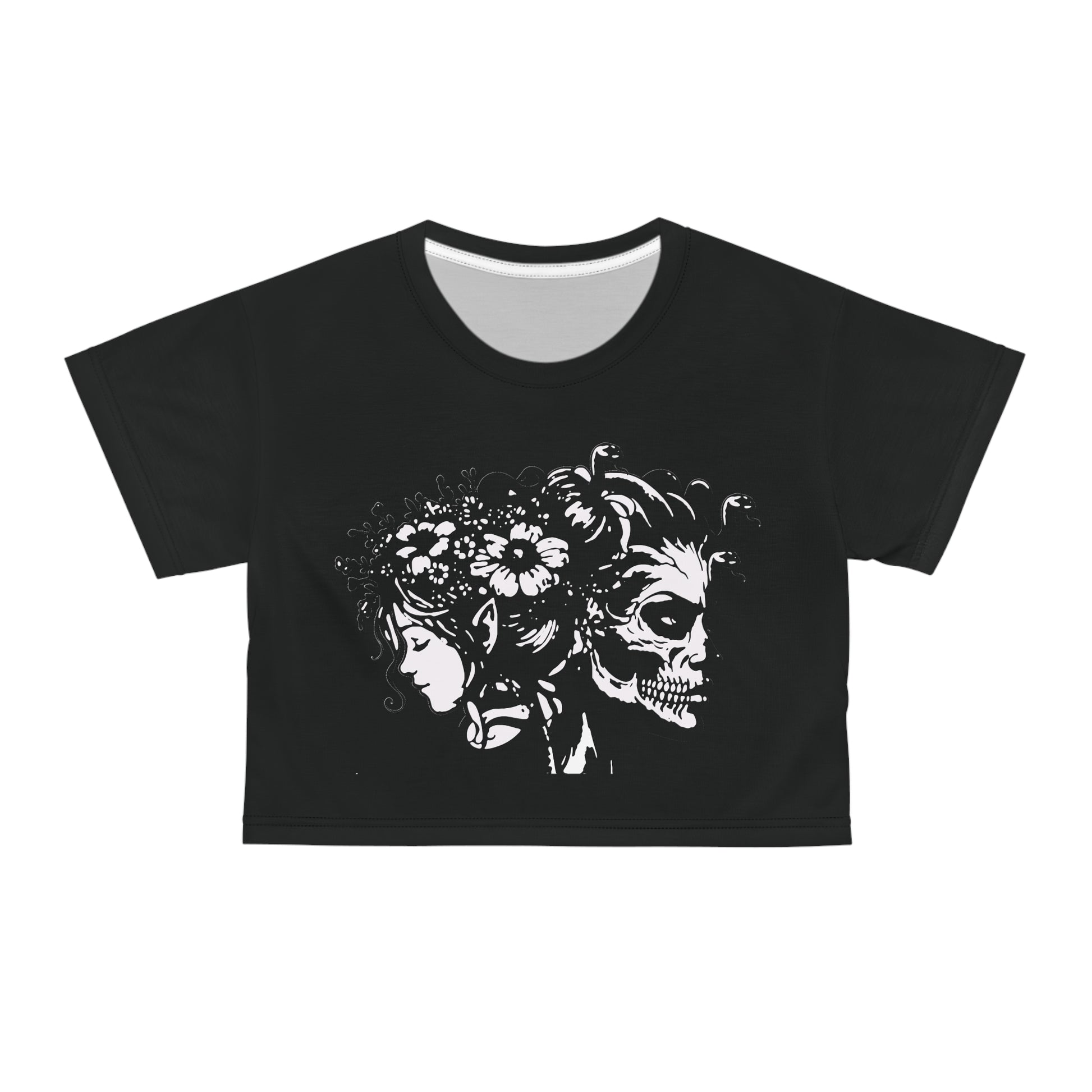 Some days it's flowers and elf ears, some days it's snakes and skulls. For fairy days and gorgon nights, this crop tee, designed in collaboration with Quebec artist EX OX, is fit for every mood.